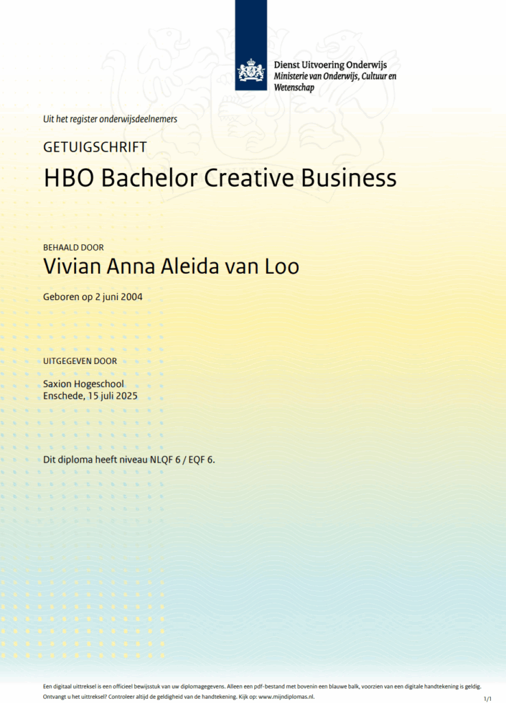 Om privacy redenen kan de inhoud van het boek niet vrijgegeven worden. Uiteindelijk heb ik dit onderzoek afgerond met een mooie 8! Een positieve afsluiting van mijn vierjarige hbo-opleiding Creative Business.